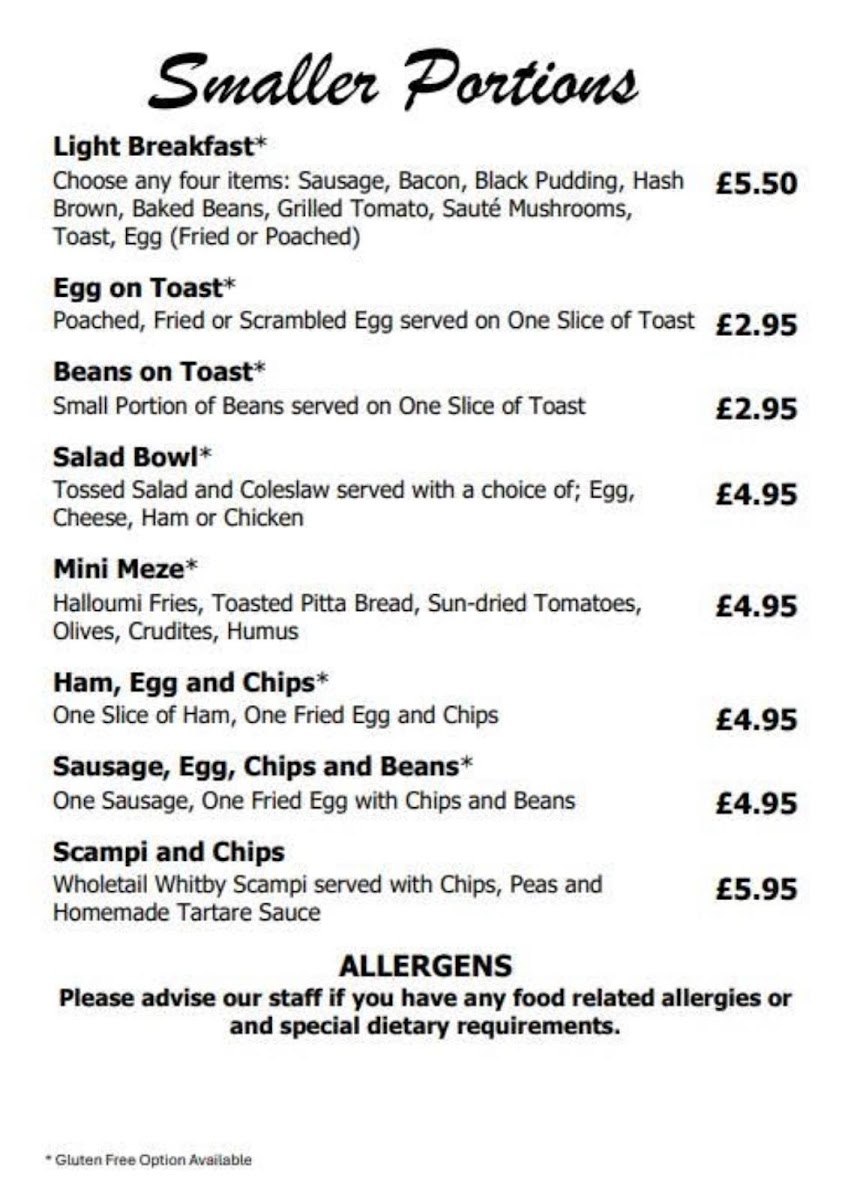 - Breakfast and Baps: Includes options such as Full English Breakfast and Big Breakfast Bap, providing hearty starts to the day.